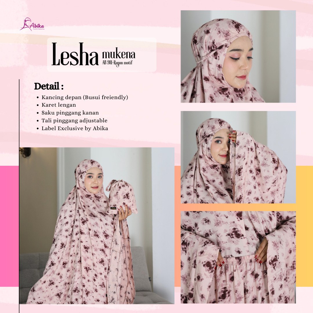 Lengkapi momen ibadahmu dengan Lesha Mukena, koleksi mukena yang hadir menggunakan bahan rayon motif�lembut, adem, dan ringan dipakai. Motif cantik yang menenangkan hati, cocok untuk kamu yang ingin tampil anggun di setiap sujud. ??