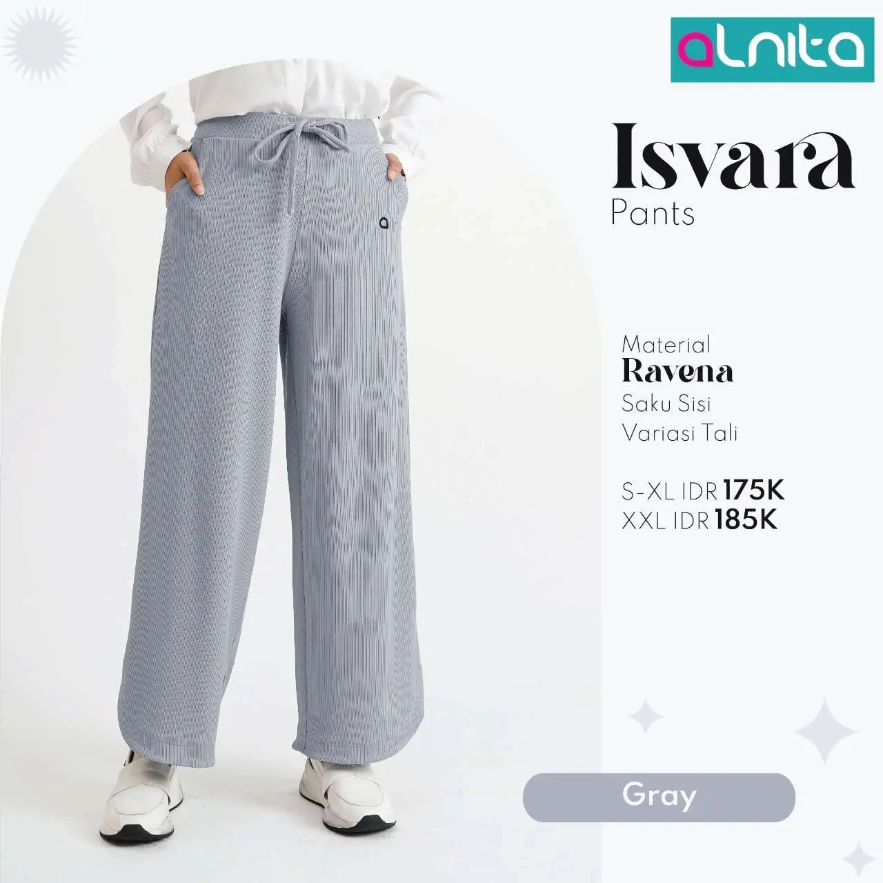 Ravena yang merupakan kain rajut polyester lembut dan jatuh. Bertekstur seperti rib yang berukuran kecil pada permukaan luar serta halus dan lembut pada bagian dalam. Ravena juga memiliki handfeel ringan, jatuh, lentur dan sejuk sehingga sangat nyaman untuk menemani segala aktivitas harianmu.