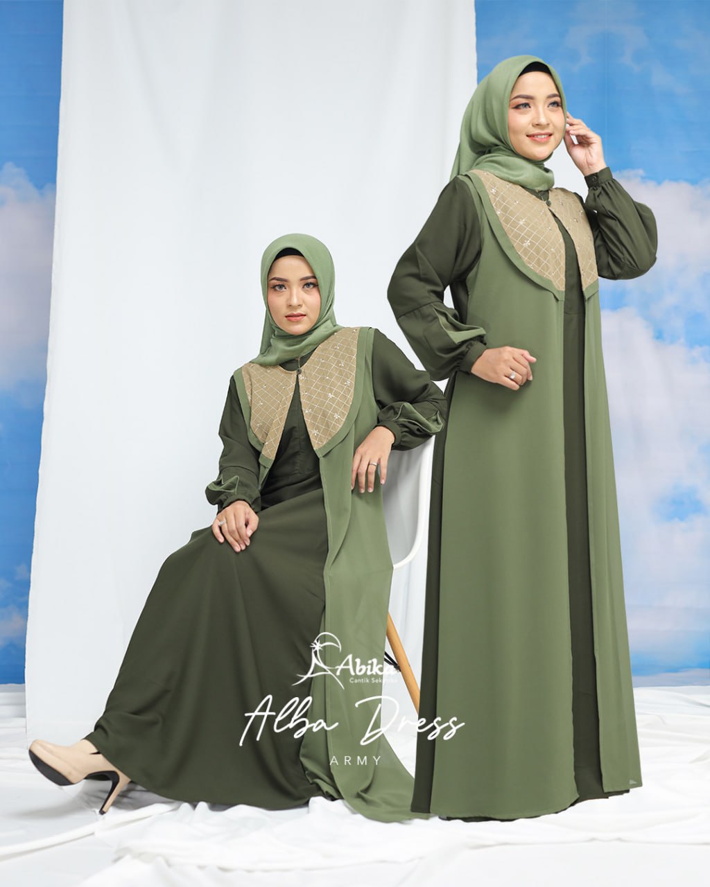 [BUNDLE] ABIKA ALBA DRESS ARMY #M + ABIKA HIJAB SYAKHIRA KHIMAR XL LATTE