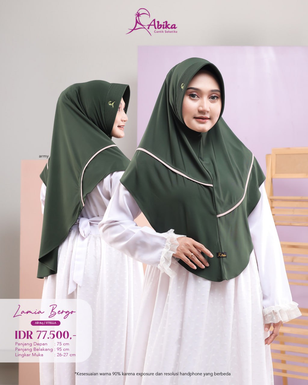 [BUNDLE] ETHICA KAGUMI-344-GREENRASEDA-#XS + ABIKA HIJAB LAMIA BERGO ARMYKetersediaan: Stok 1