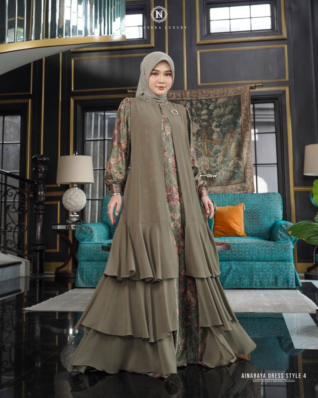 [BUNDLE] NADHEERA AINARAYA-DRESS-STYLE-4-OLIVE-#S + NIBRAS HIJAB FULMALA PASHMINA HEDGE GREENKetersediaan: Stok 1