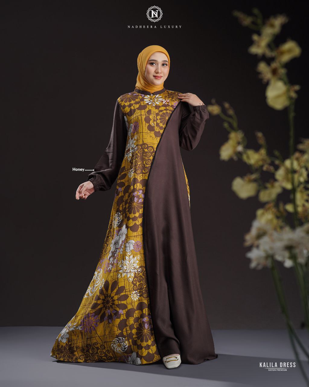 ND-KALILA-DRESS-HONEY-#L + K-INAYA RUBY SCARF PEACH