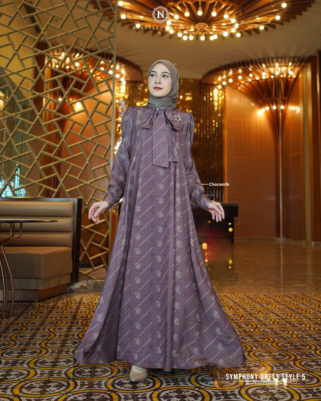 [BUNDLE] NADHEERA SYMPHONY-DRESS-STYLE-5-CHOCOMILK-#XL + NIBRAS HIJAB BIHRIA SCARVES BLACK