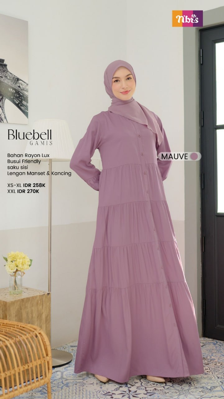PAKET PROMO BUNDLE NIBRAS BLUEBELL MAUVE #XXL + NIBRAS HIJAB BIHRIA SCARVES WHITE