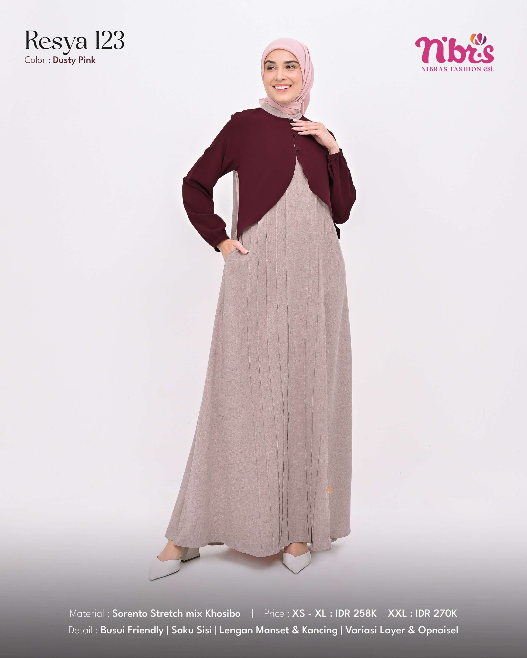 NB-RESYA 123 DUSTY PINK #XXL + NH-BIHRIA SCARVES WHITE