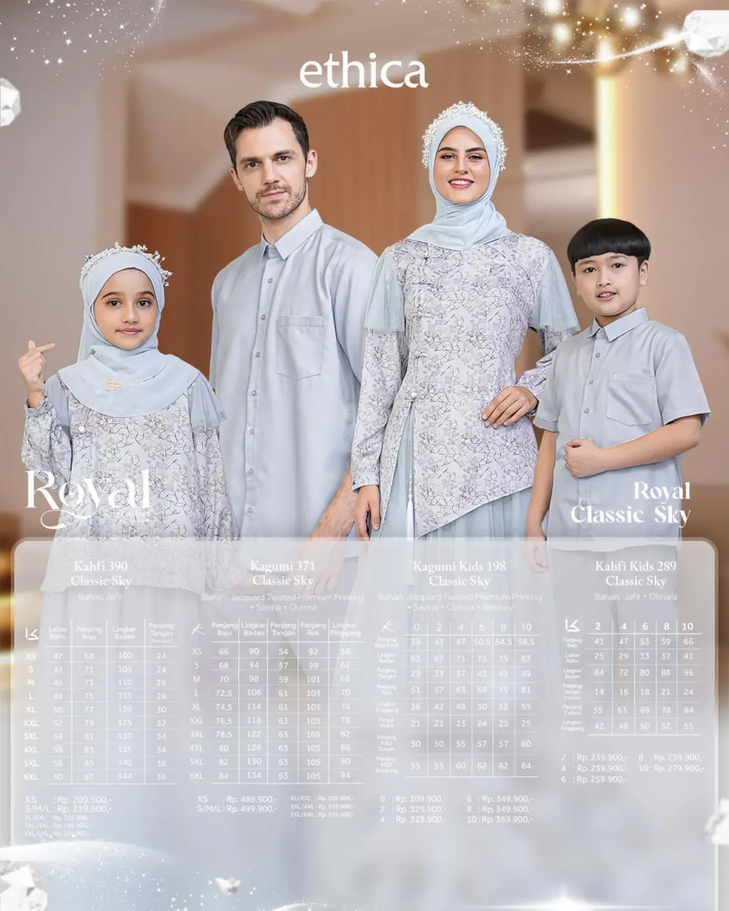 Ethica Sarimbit 2026, Gamis Anak, Gamis Dewasa, Koko DewasaRoyal Classic sky