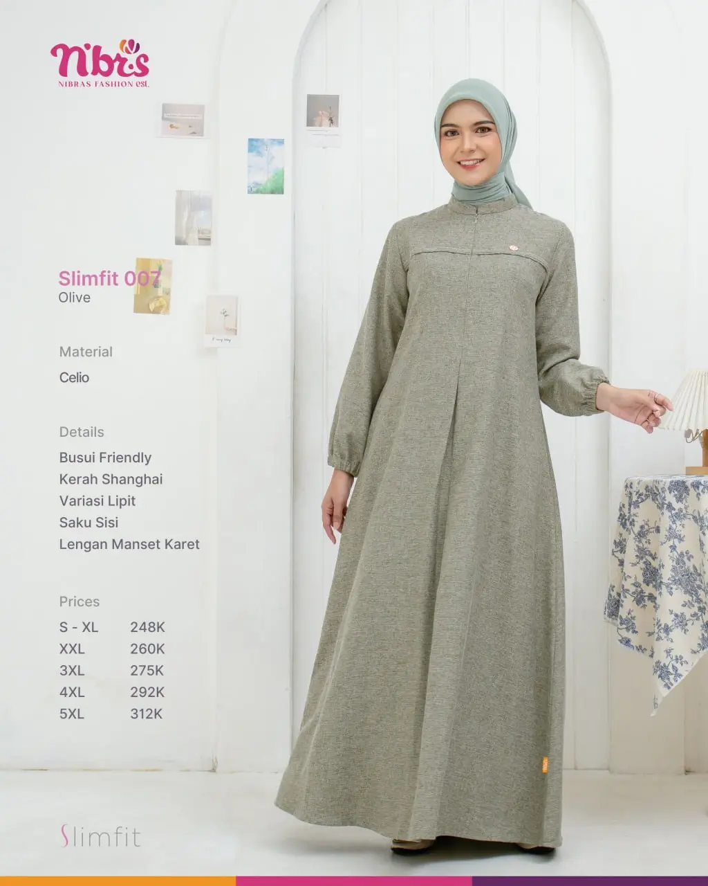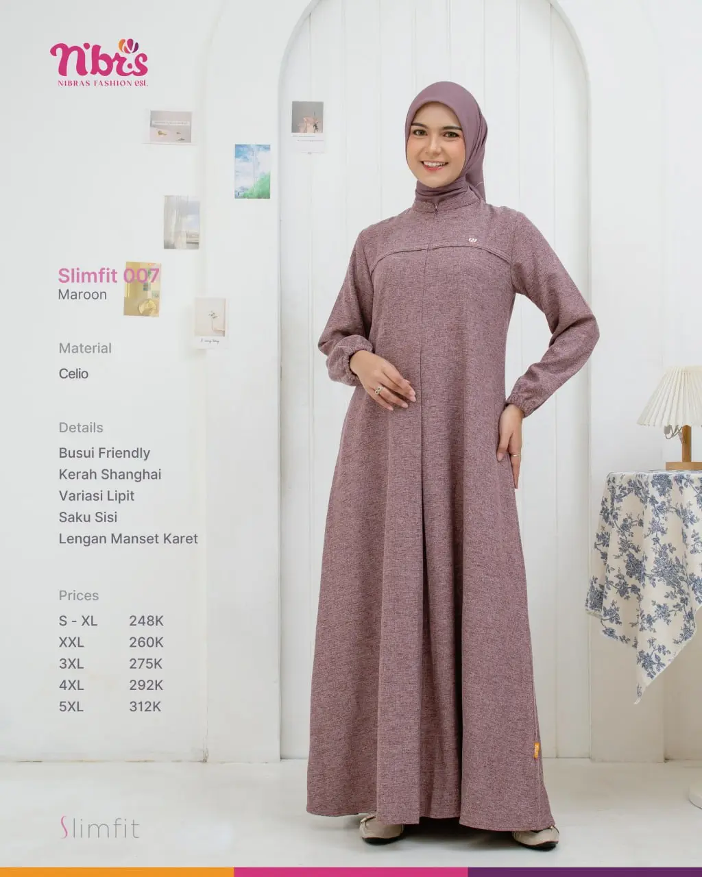 Menggunakan bahan Celio yang lembut, adem, dan jatuh sempurna, memberikan kenyamanan maksimal cocok untuk tampilan kompak dan seragaman, baik untuk pengajian, acara formal, maupun keseharian.