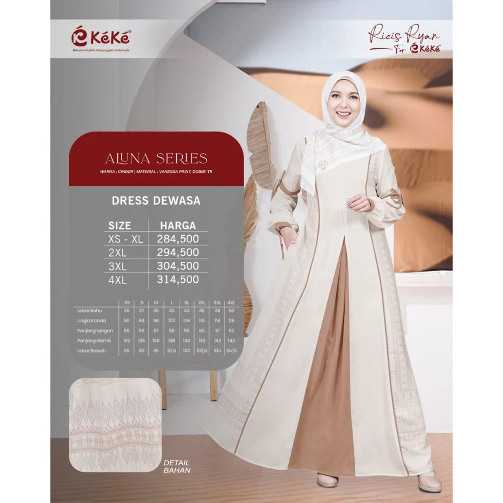 Koleksi sarimbit terbaru dari KeKe Busana yaitu ALUNA SERIES yang di desain simple dan elegan. Gamis ampil manis dengan detail potongan, list jepit dan dipercantik dengan motif etnik dengan warna-warna yang fresh😍 serta detail variasi list pita pada bagian lengan.