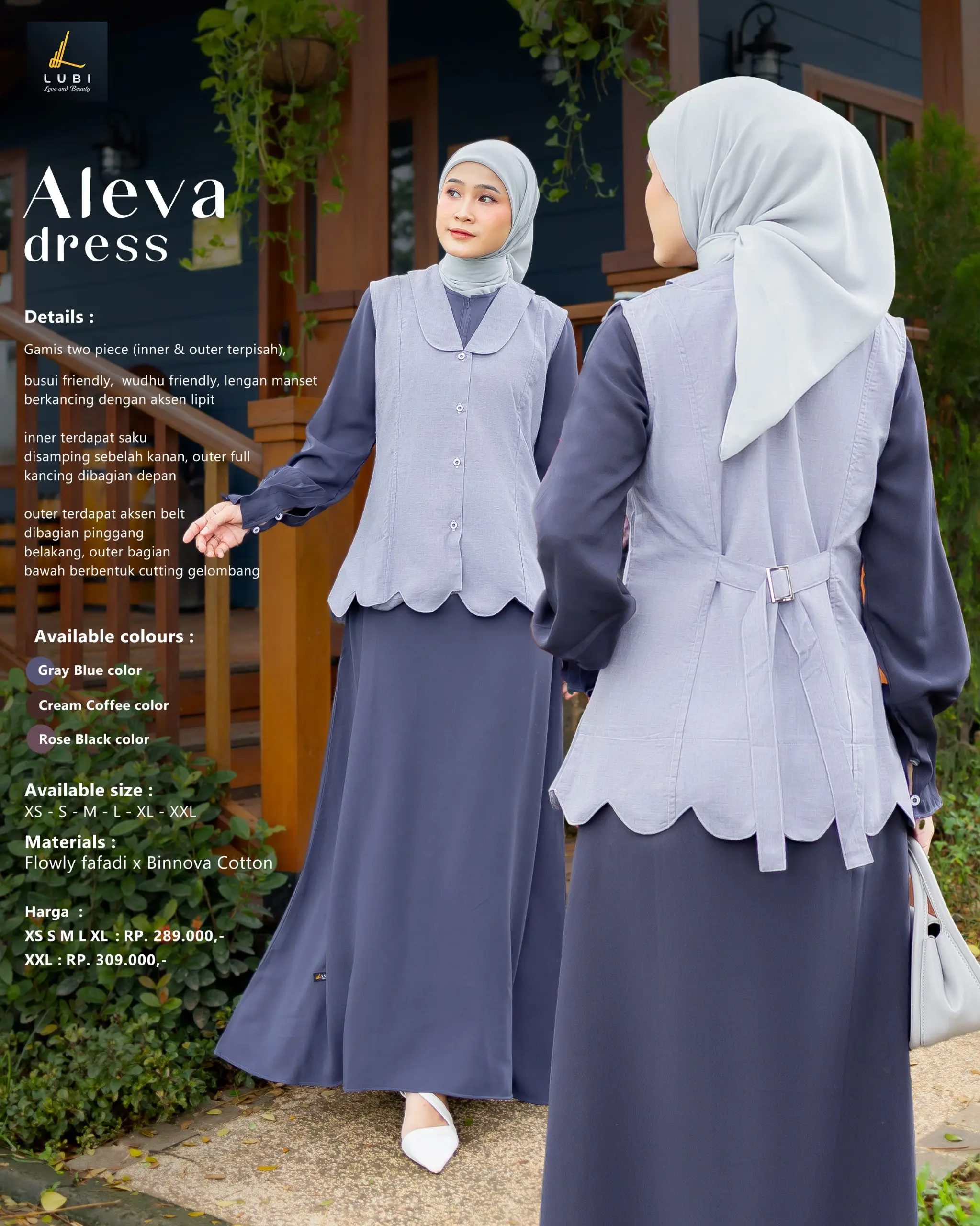 – Gamis two piece (inner & outer terpisah)