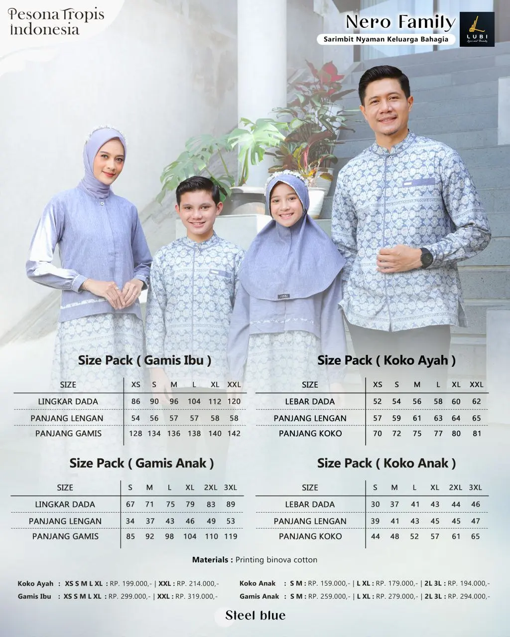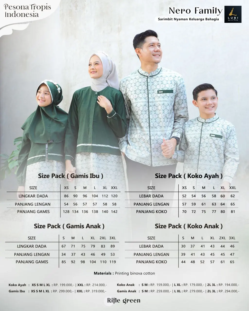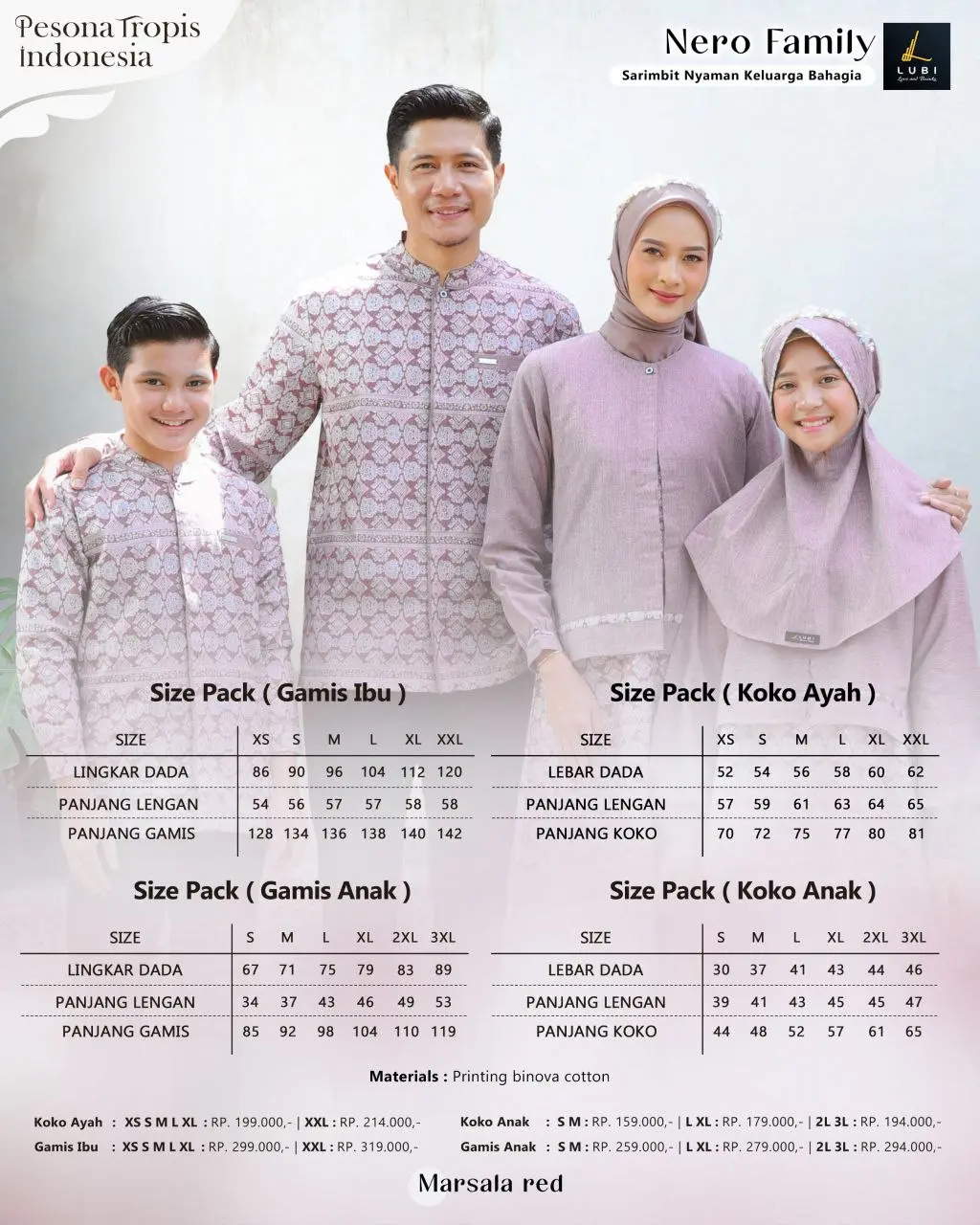 Gamis & koko terbuat dari kain _Printing Binova Cotton_ adalah salah satu jenis kain terbaik lubi yang memiliki karakteristik tekstur halus, berserat, lembut, memiliki ketebalan yang pas & menyerap keringat sehingga nyaman saat dikenakan.