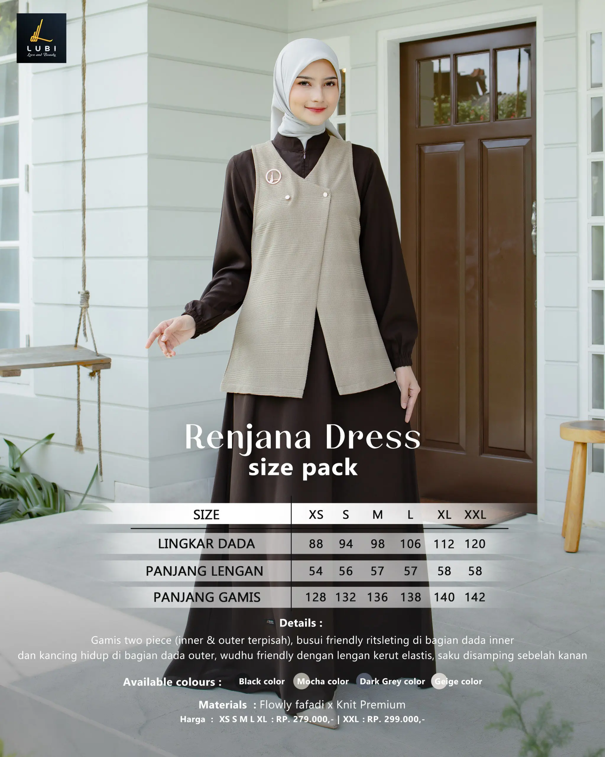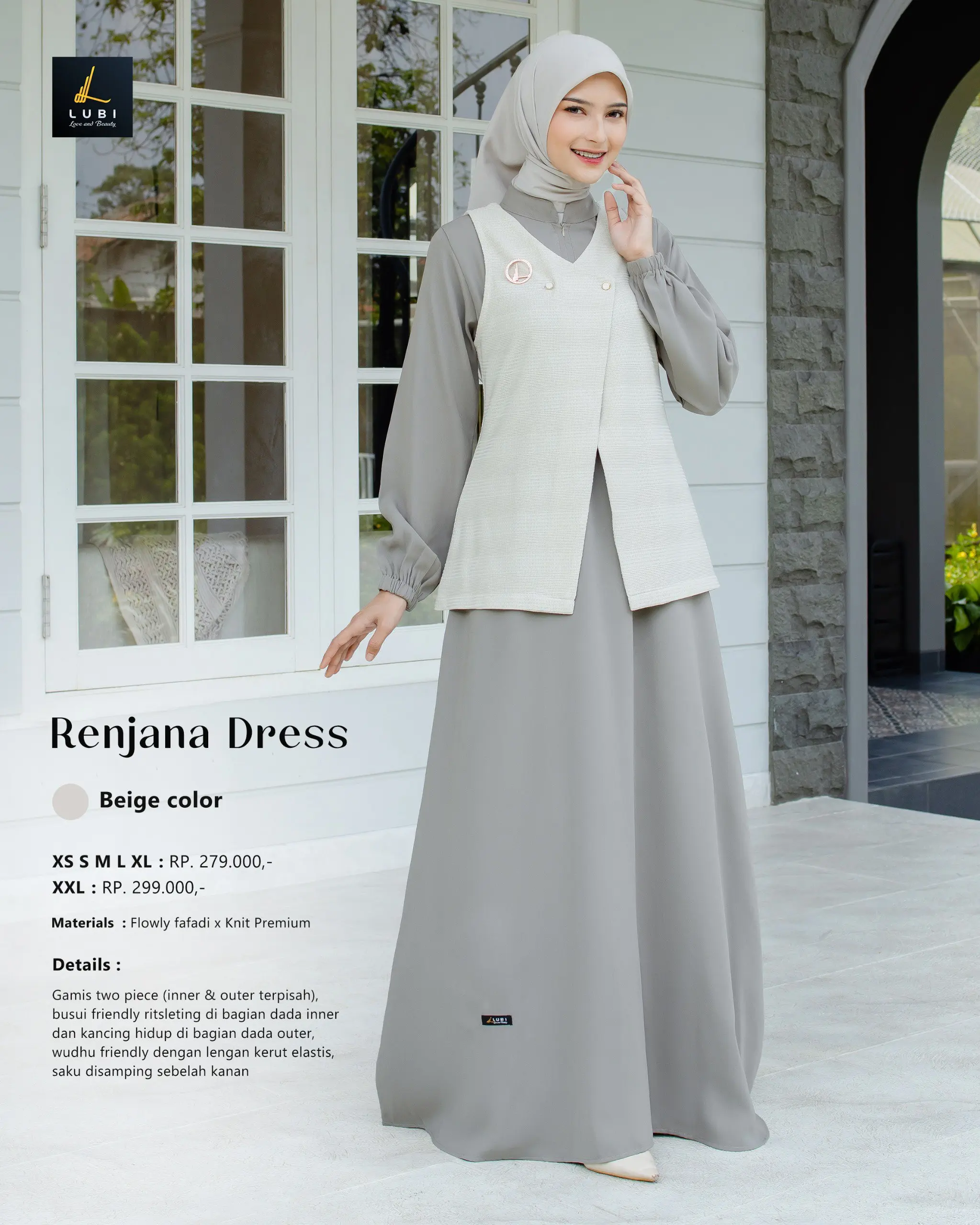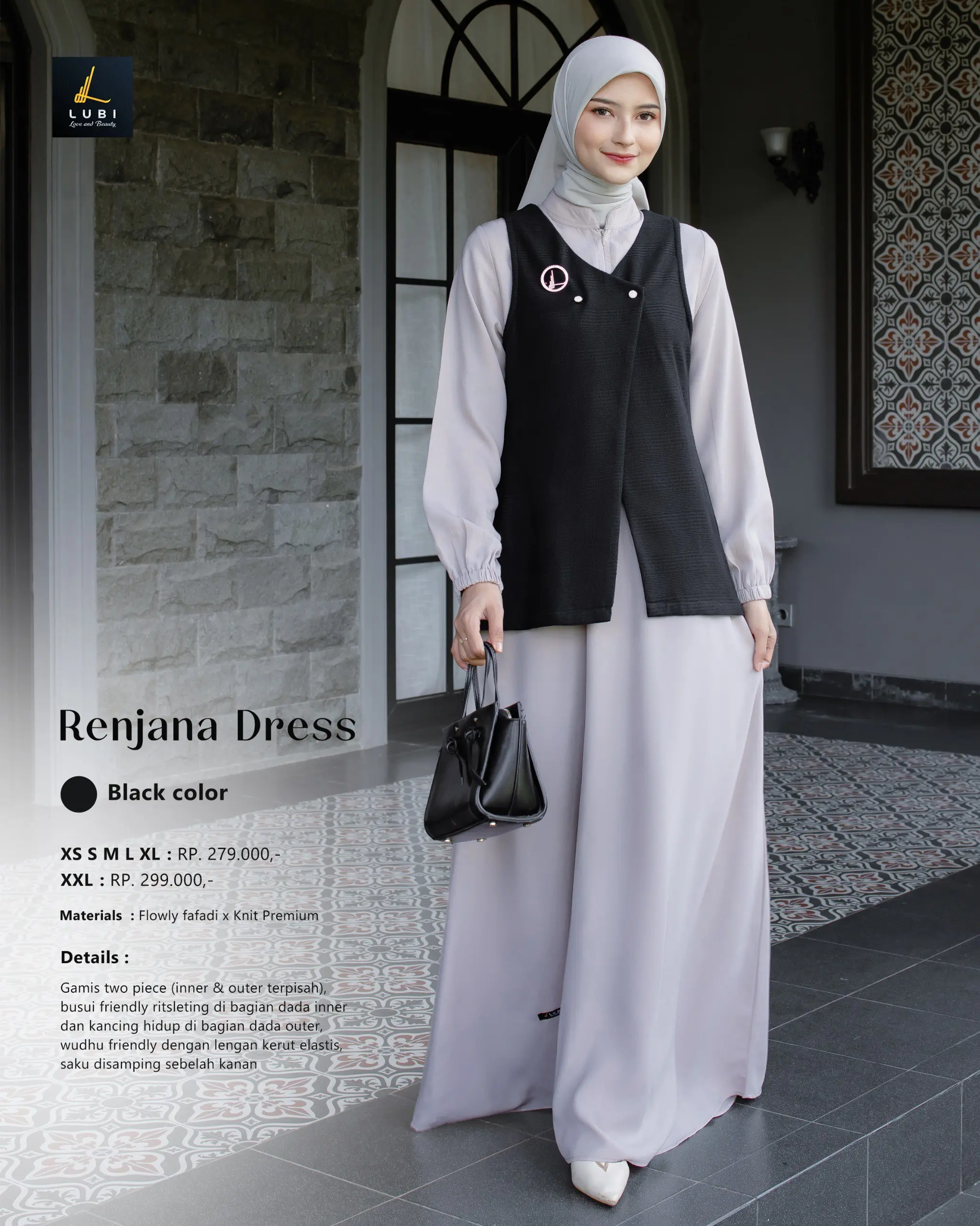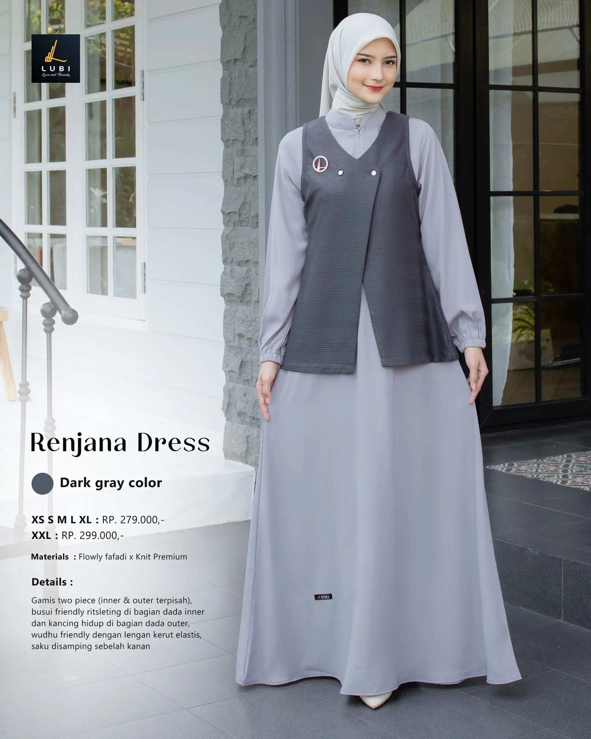 – gamis two piece (inner & outer terpisah)