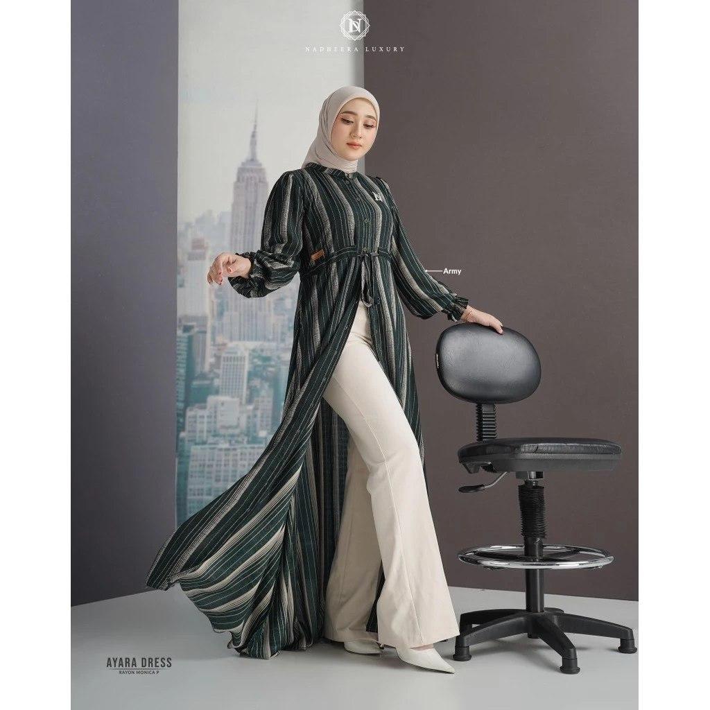 berbahan Rayon Monica Premium yang sangat nyaman, adem. Modelnya simple namun looknya super mewah! Cocok banget untuk outfit daily, outfit hangout, outfit lebaran atau kondangan My Nadheera!