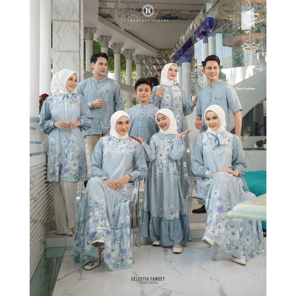 berbahan Issabella Premium yang sangat nyaman, adem. Modelnya simple namun looknya super mewah! Cocok banget untuk outfit kondangan, outfit lebaran, seragaman bareng sekeluarga My Nadheera!