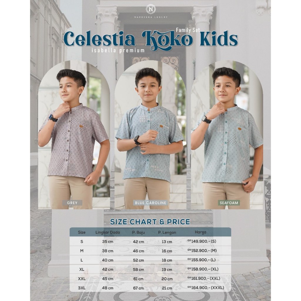 berbahan Issabella Premium yang sangat nyaman, adem. Modelnya simple namun looknya super mewah! Cocok banget untuk outfit kondangan, outfit lebaran, seragaman bareng sekeluarga My Nadheera!