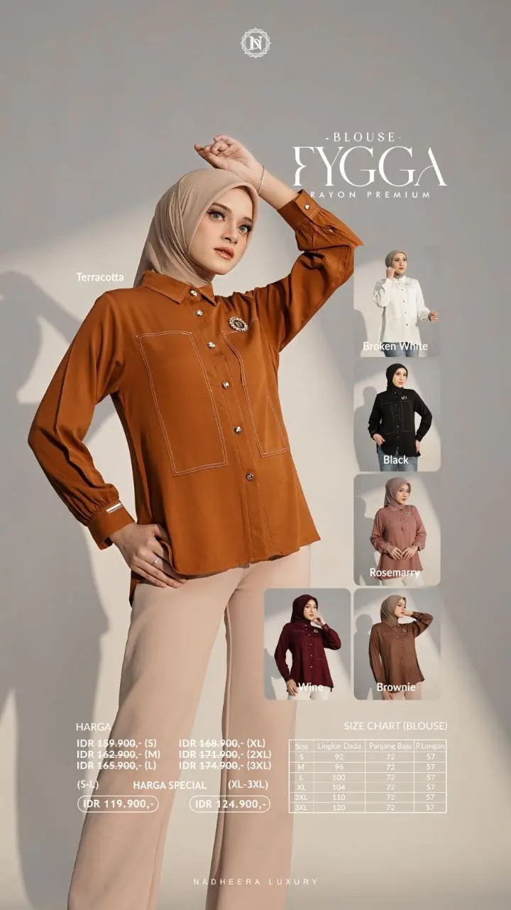 berbahan rayon premium yang sangat nyaman, adem. Modelnya simple namun looknya super mewah! Cocok banget untuk outfit daily, outfit hangout atau semi formal My Nadheera! ??