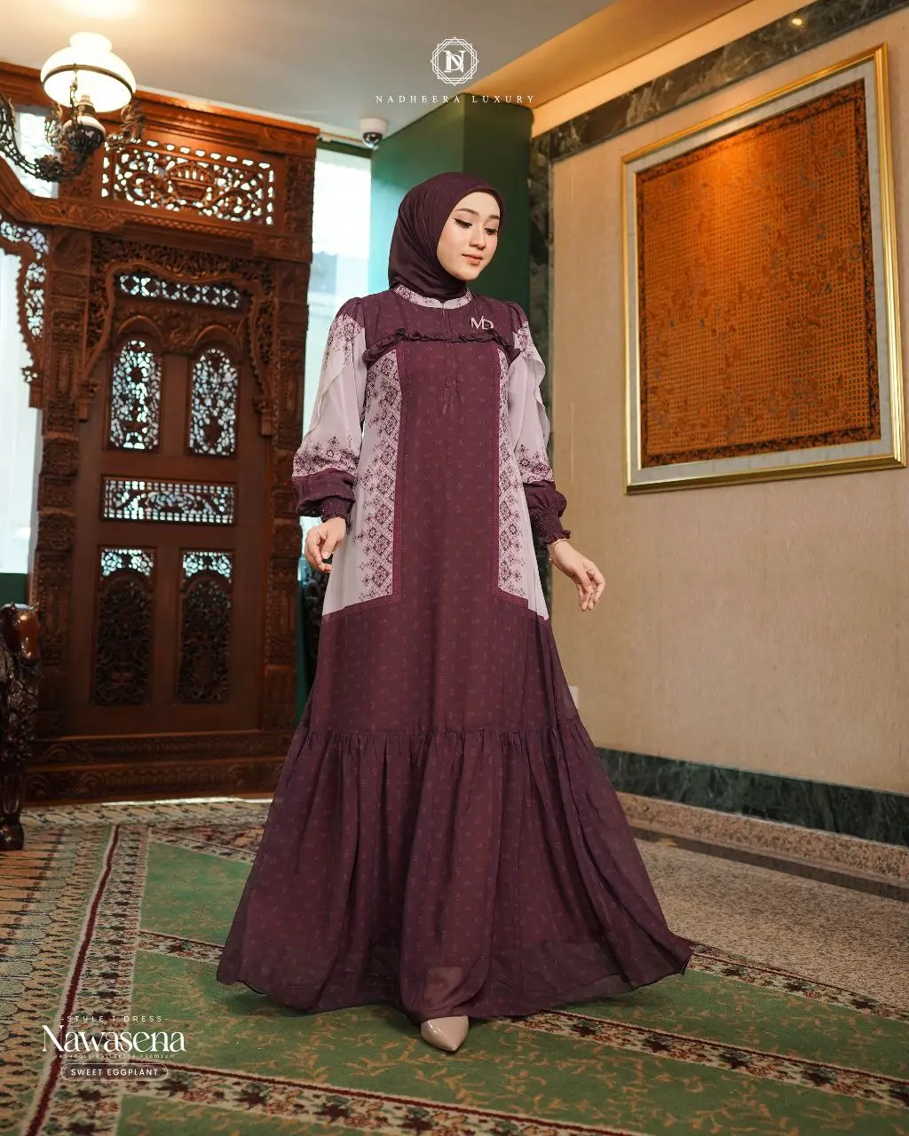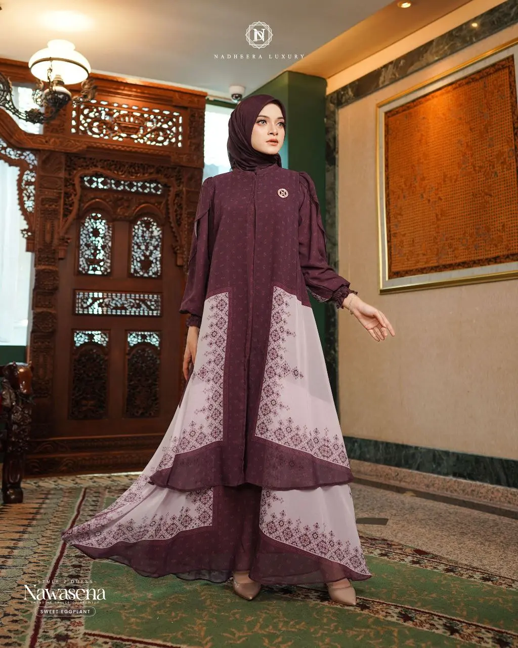 Berbahan _ Premium_ yang sangat nyaman, adem. Modelnya simple namun looknya super mewah! Cocok banget untuk outfit kondangan, outfit lebaran, seragaman bareng sekeluarga My Nadheera!