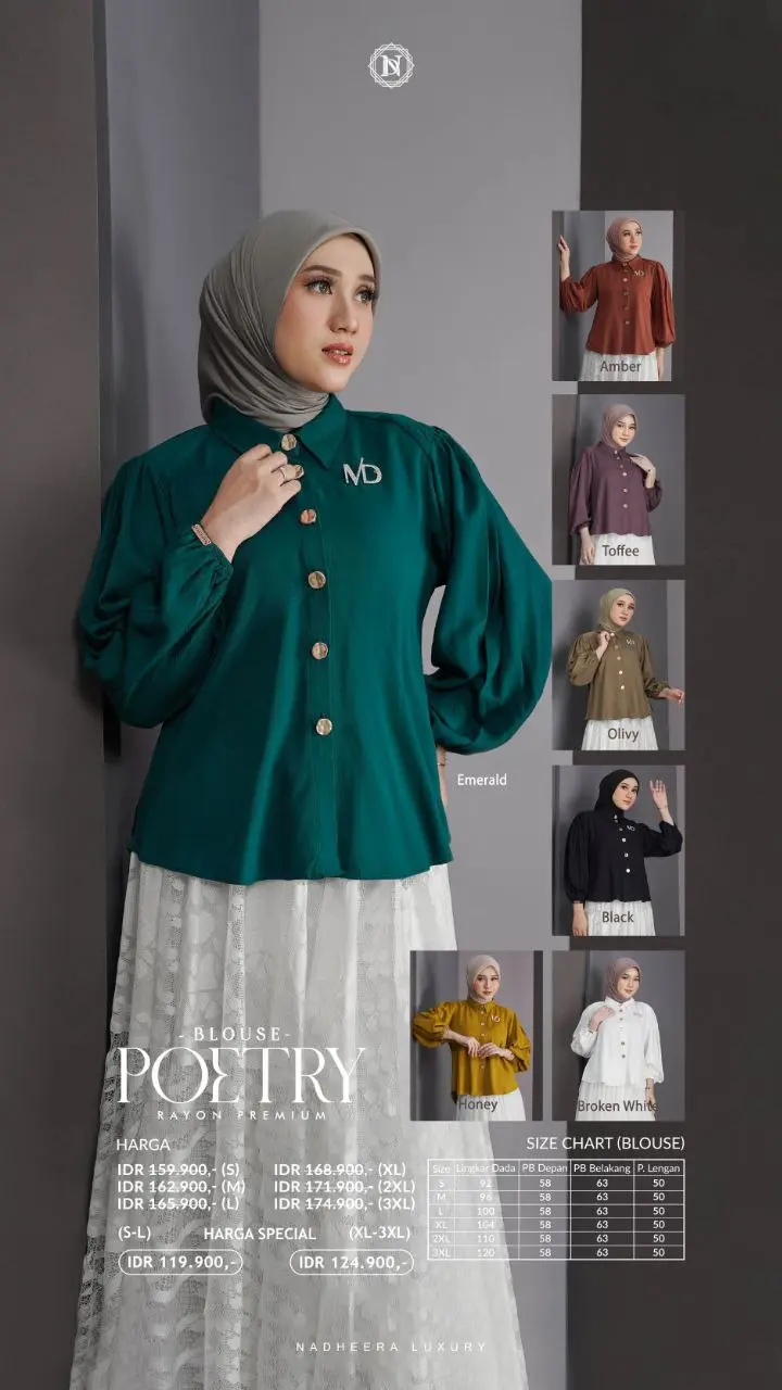 berbahan rayon premium yang sangat nyaman, adem. Modelnya simple namun looknya super mewah! Cocok banget untuk outfit daily, outfit hangout atau semi formal My Nadheera! ??