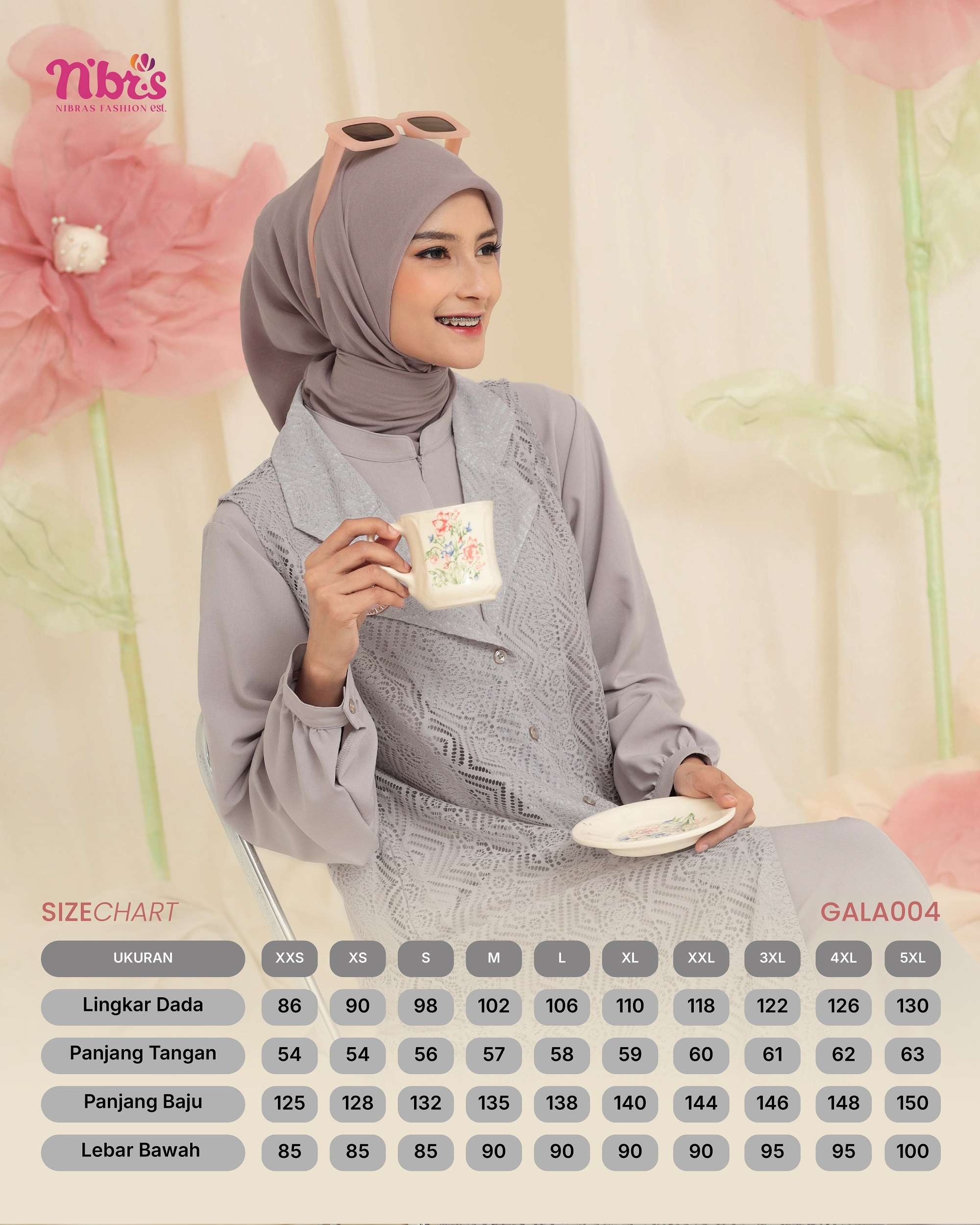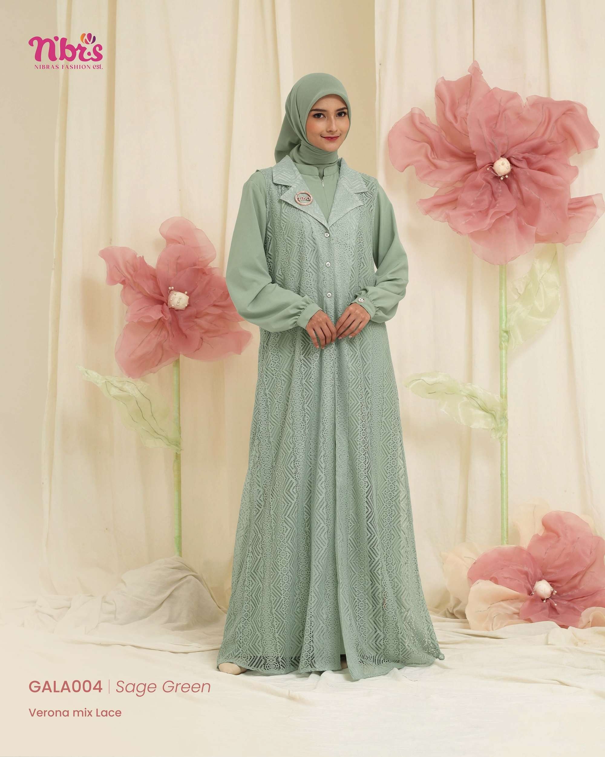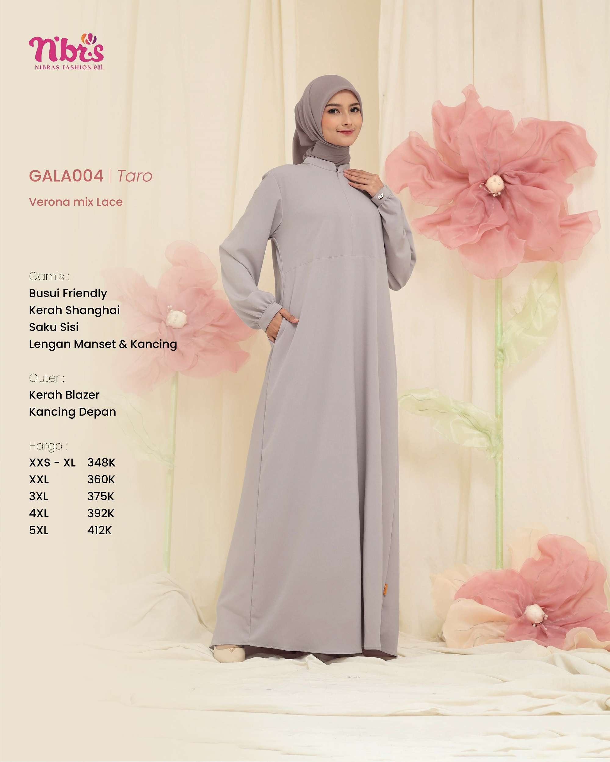 Gala 004 Gamis terbaru ini hadir dengan desain modern dan elegan Dilengkapi outer lace lepas pasang, memberikan fleksibilitas gaya yang memukau!