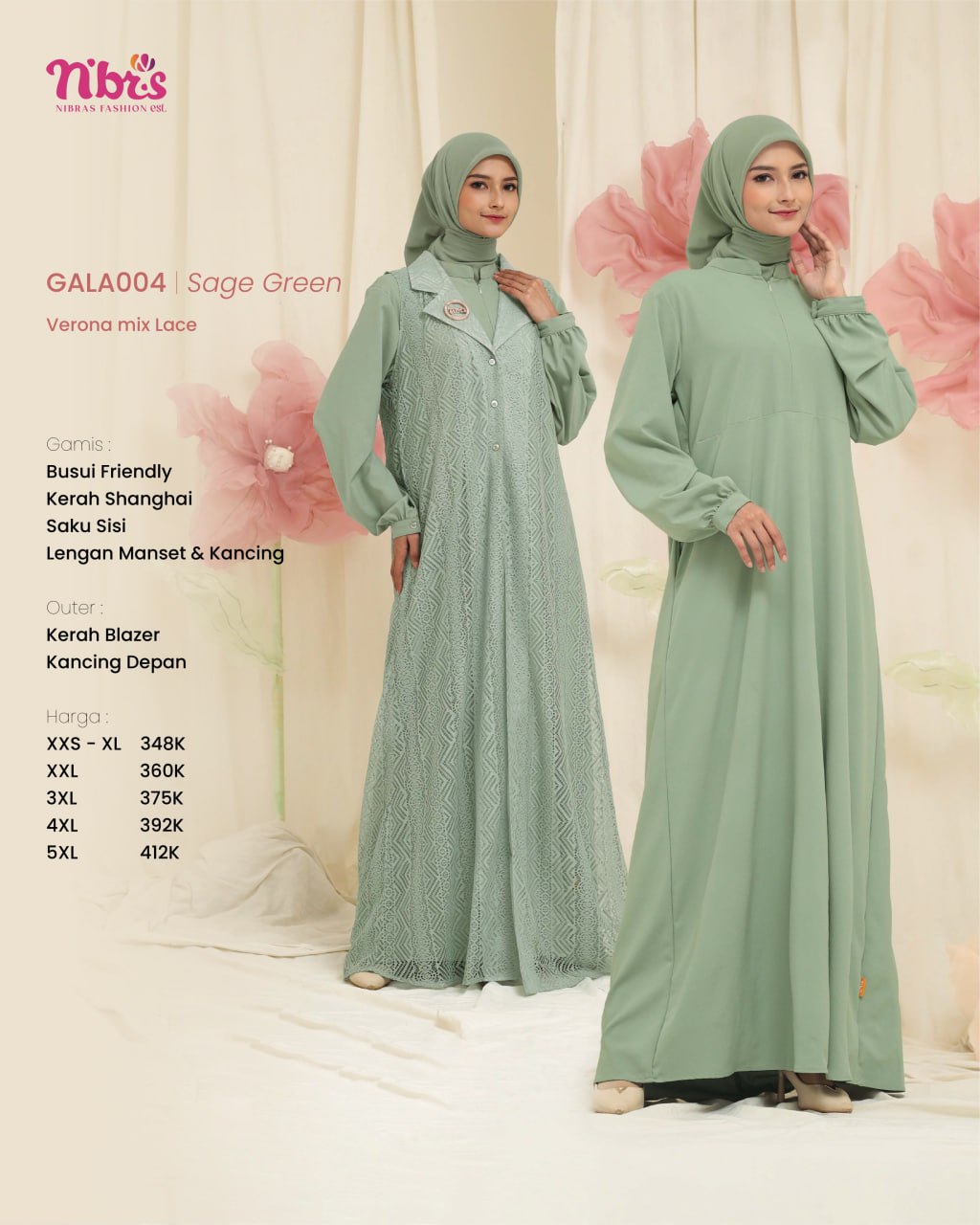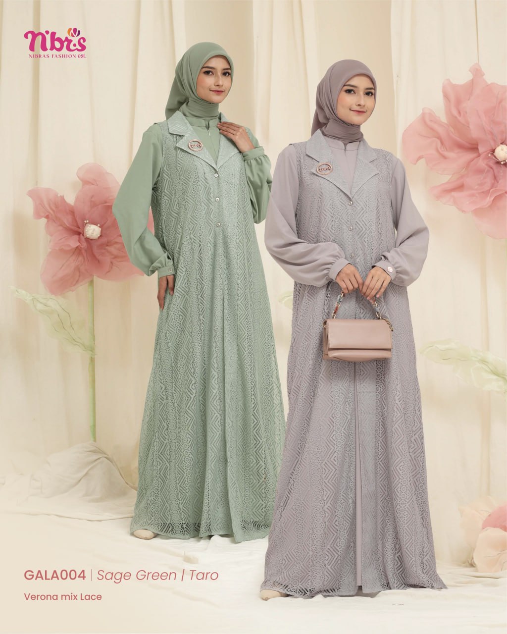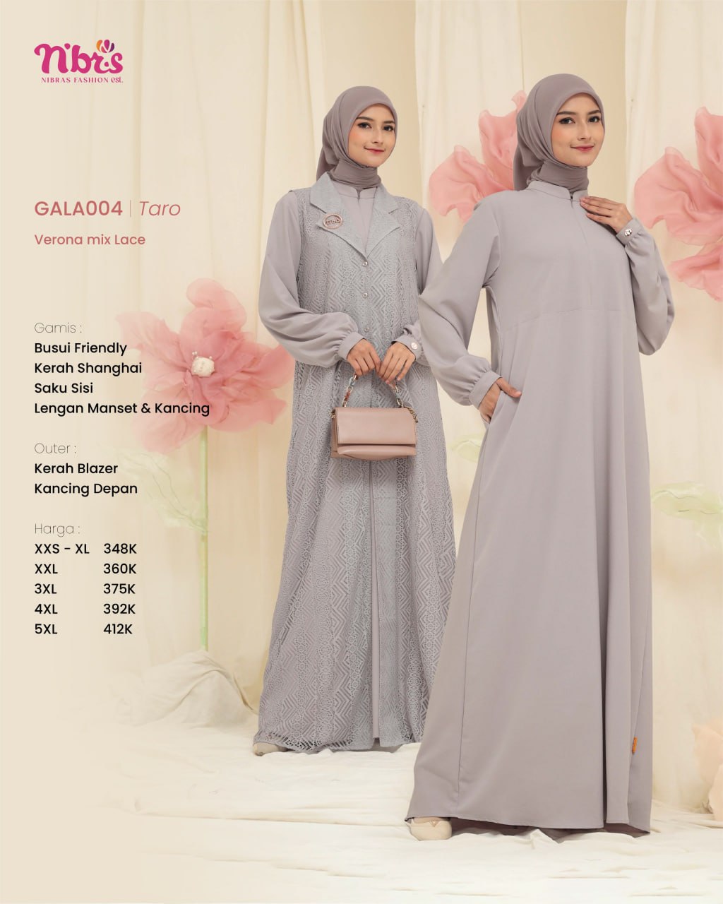 Gala 004 Gamis terbaru ini hadir dengan desain modern dan elegan Dilengkapi outer lace lepas pasang, memberikan fleksibilitas gaya yang memukau!