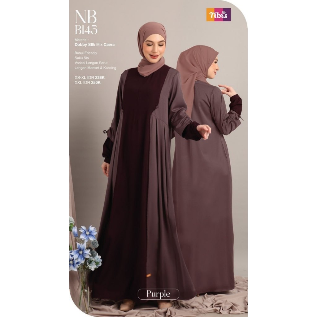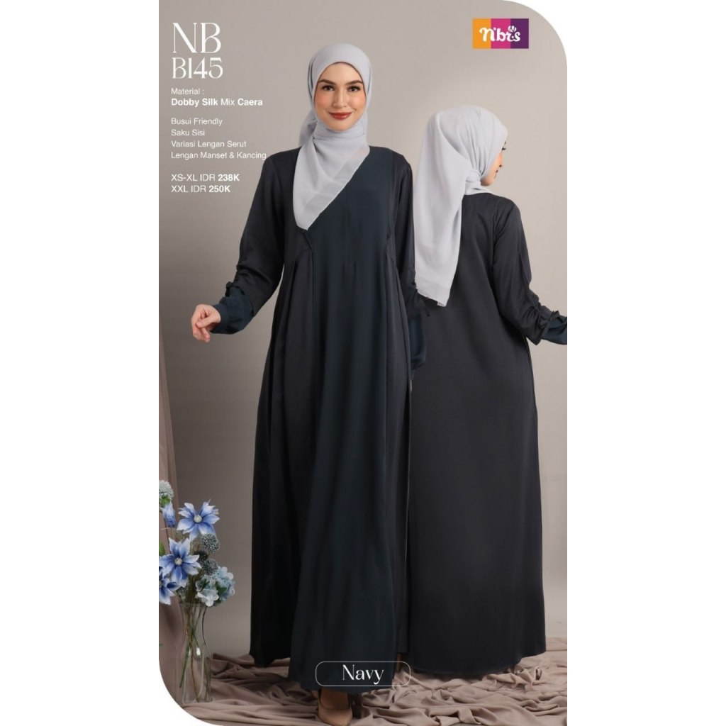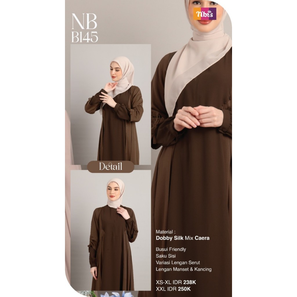 New Collection NB B145 ! Gamis terbaru dengan material terbaik yaitu Dobby Silk memberikan tampilan terlihat mewah dan bersinar sepanjang waktu