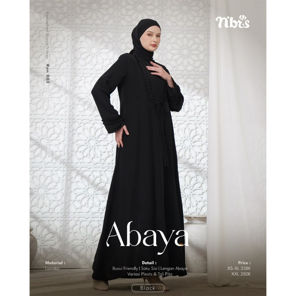 Didesain dengan gaya simple, _*Ramadha Abaya Nibras 003*_ ini menghadirkan sentuhan feminim dalam gaya yang tak lekang oleh waktu