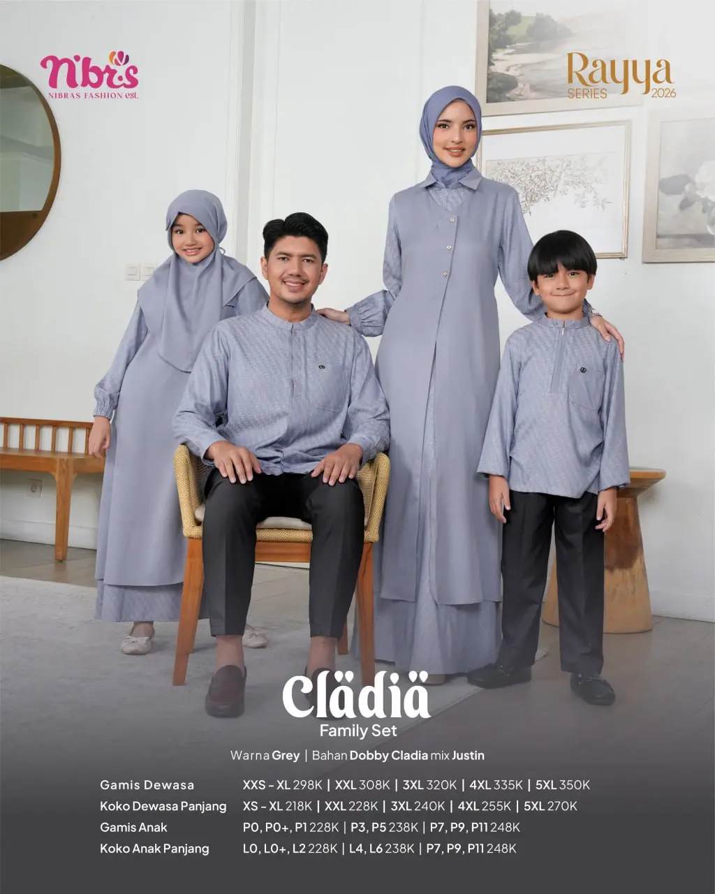 NIBRAS CLADIA GREY SARIMBIT RAYYA SERIES 2026
