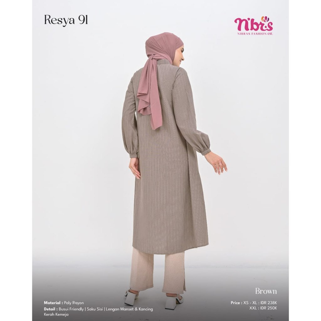 Koleksi Tunik terbaru by Nbrs yaitu Resya 91 untuk melengkapi keseharian dengan anggun. tambahan kerah kemeja yang memudahkan styling hijabmu!