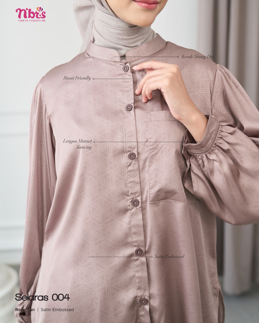 * Keunggulan bahan Satin Embossed tekstur elegan, kain lembut mengkilap, ringan, nyaman, dan tahan lama