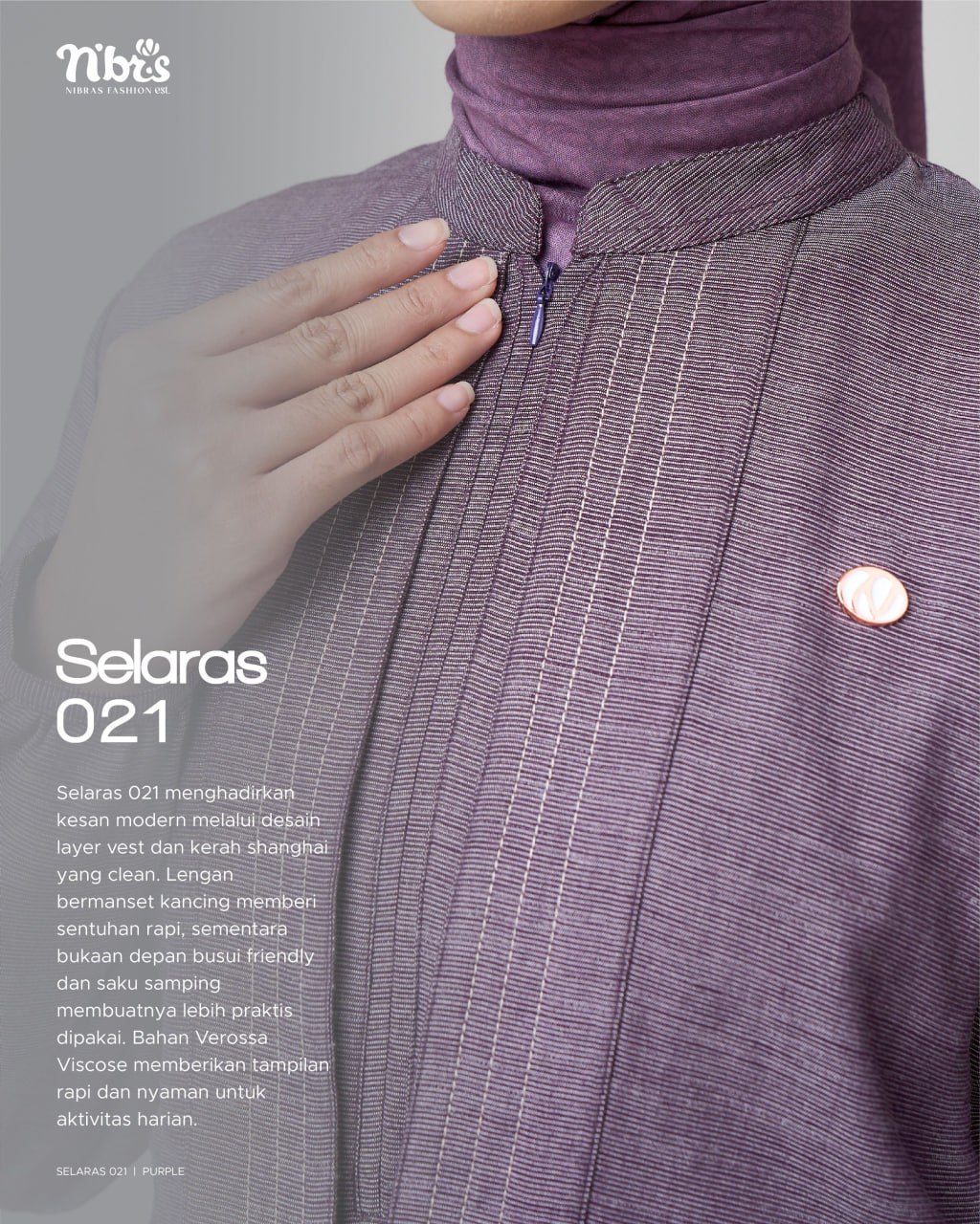 Selaras 021 hadir sebagai jawaban bagi wanita modern yang mengutamakan kenyamanan dan tampilan rapi. Dengan dua pilihan warna elegan, Terracotta yang hangat dan Purple yang anggun, gamis ini cocok untuk menemani berbagai aktivitas harian.