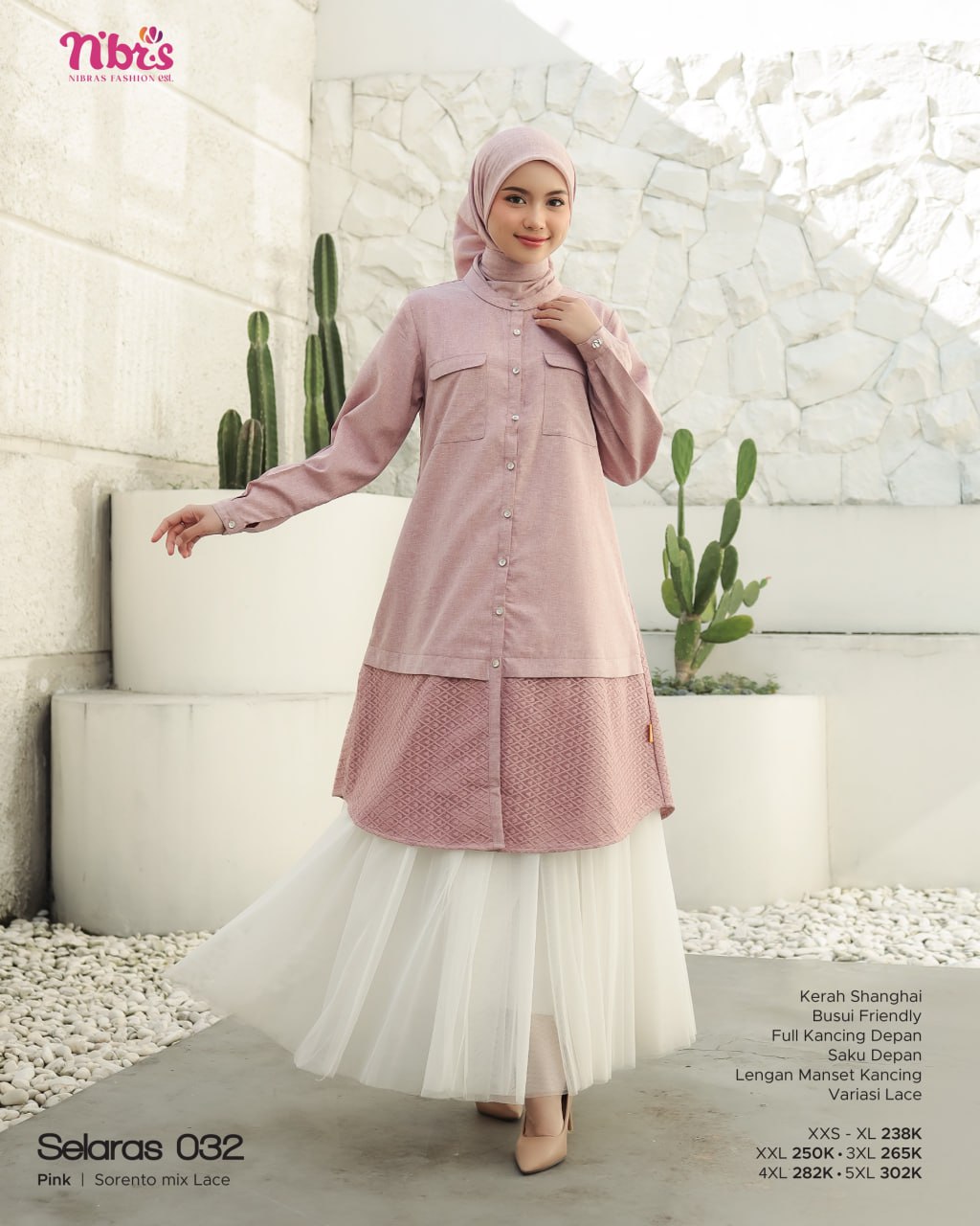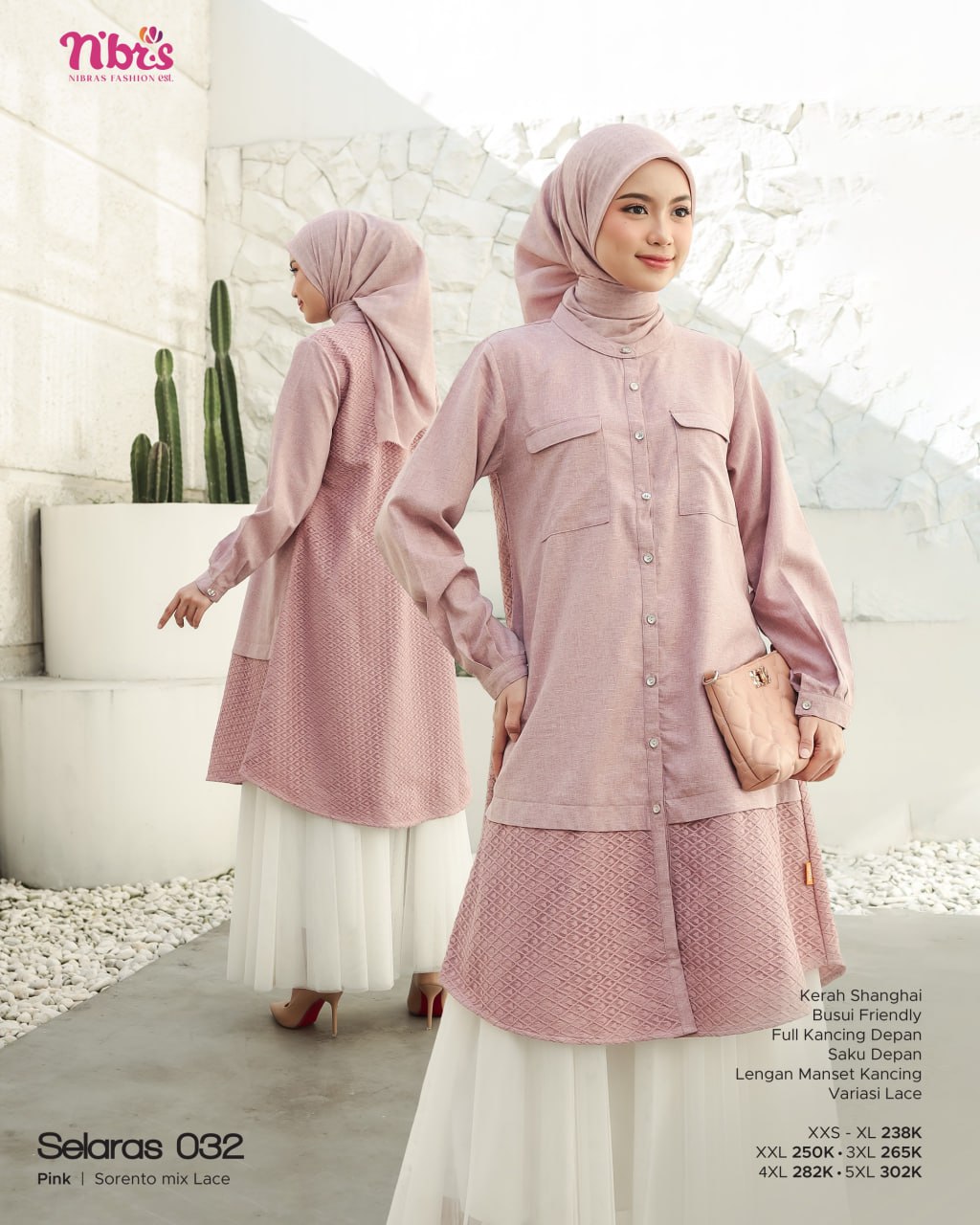 Tampil menawan dengan sentuhan feminin dari Selaras 032 Warna pink lembut dan detail lace eksklusif memberikan kesan elegan yang pas untuk berbagai kesempatan.