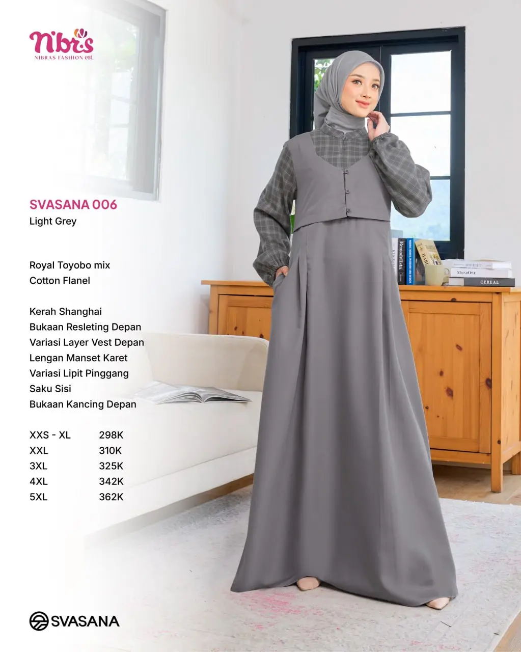 Kenakan gaya terbaikmu dengan koleksi terbaru Svasana 006 , Gamis modern yang memadukan kenyamanan dan keanggunan dalam setiap detailnya.