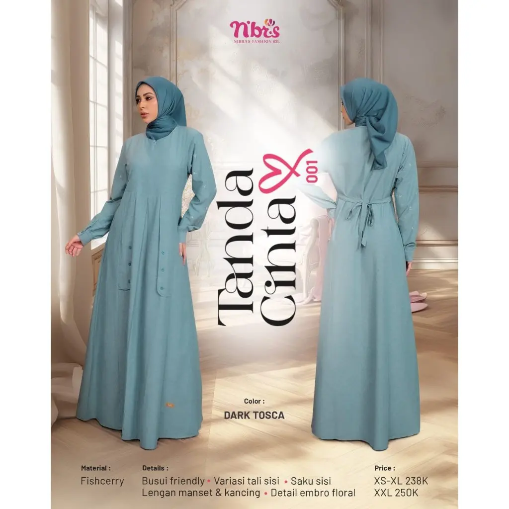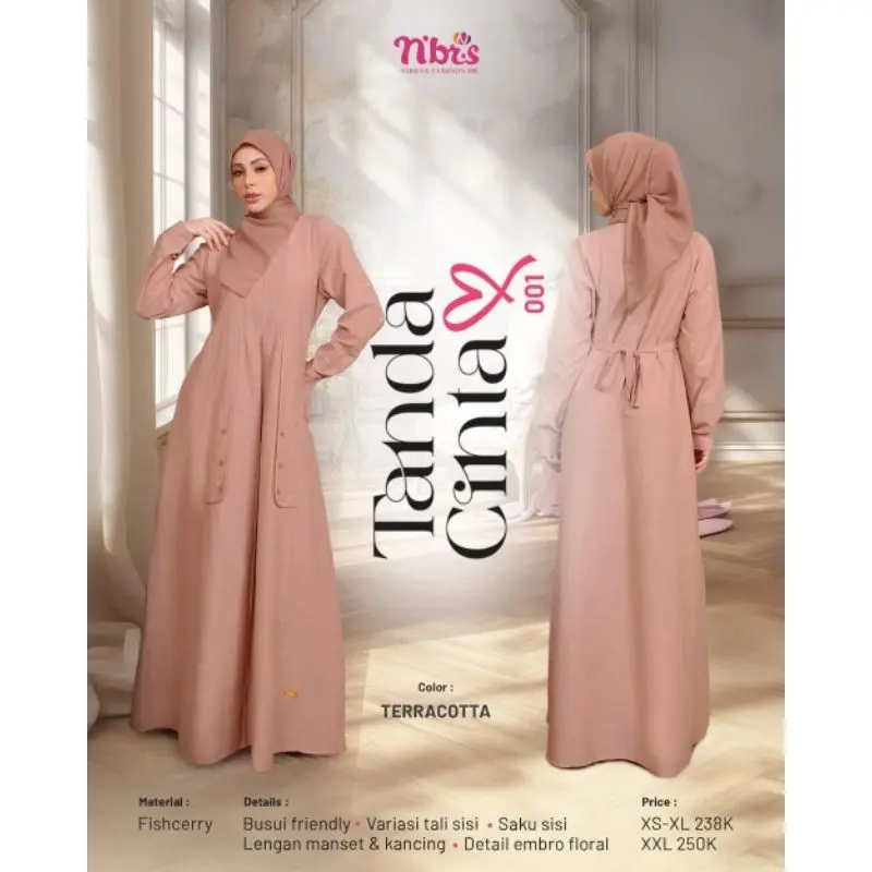 Lengkapi keseharian muslimah dengan koleksi terbaru by Nbrs yaitu Tanda Cinta 001 koleksi ini memiliki tampilan simple dan tambahan embro floral yang mempermanis gamis