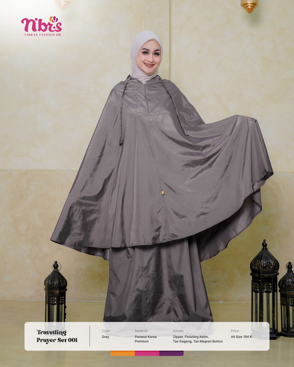 Bahan parasut Korea premium terbuat dari serat sintetis yang sangat ringan dan kuat mirip polyester. Bahan parasut Korea premium ini memiliki tekstur yang halus dan licin sehingga dapat digunakan untuk membuat mukena travel yang ringan, adem, dan mudah dibersihkan.