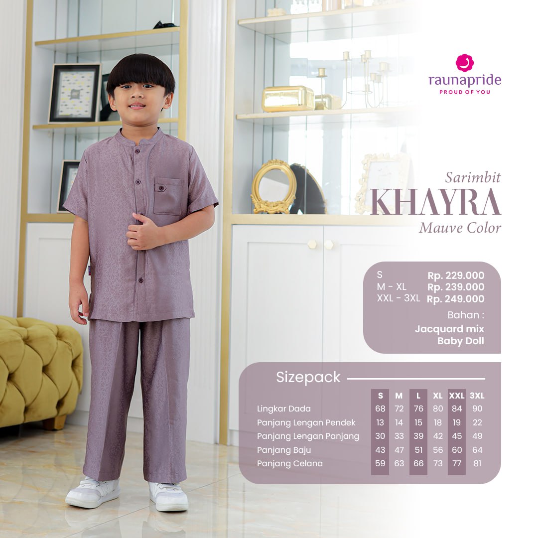 Sarimbit Khayra by raunapride menggunakan bahan Jacquard England mix Solid yang memiliki karakteristik permukaannya yang khas. Bahan Jacquard memiliki Motif timbul dan sedikit mengkilap dan kombinasi bahan baby doll yang membuatnya terlihat elegan. teksturnya juga terasa lembut. sehingga nyaman saat digunakan.
