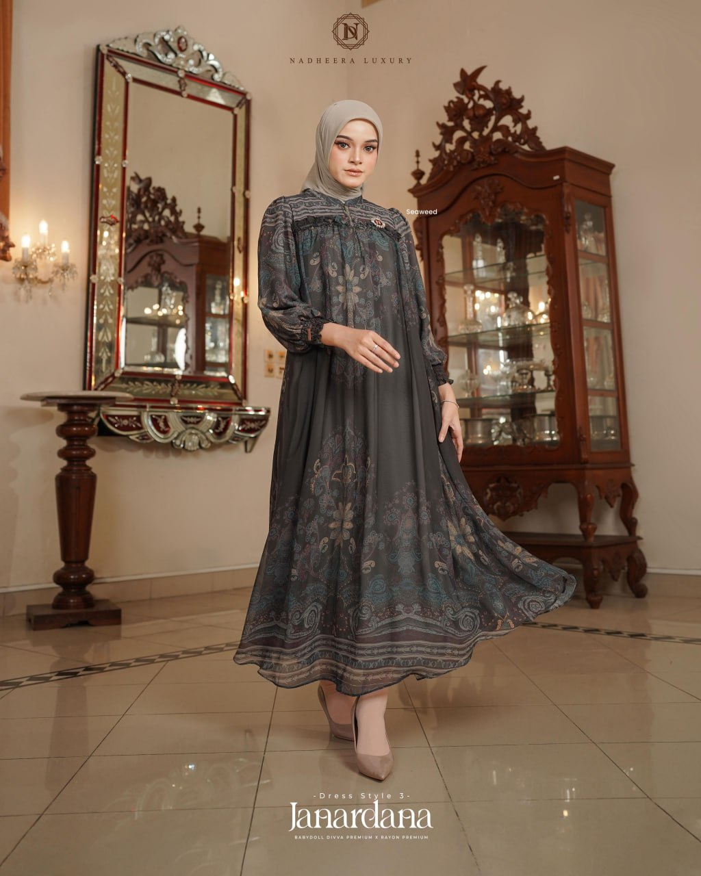 Berbahan Babydoll Divva Premium yang sangat nyaman, adem. Modelnya simple namun looknya super mewah! Cocok banget untuk outfit kondangan, outfit lebaran, seragaman bareng sekeluarga My Nadheera! ??