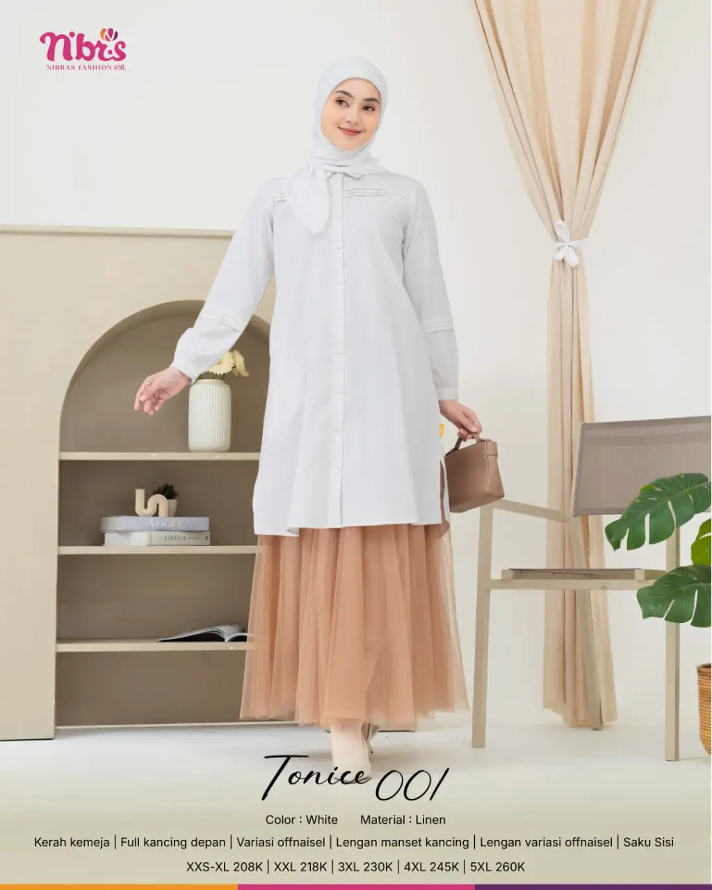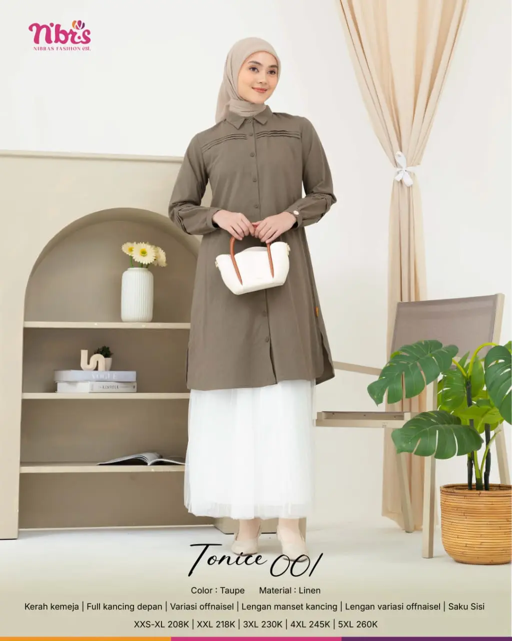 *Tonice 001* tunik linen dengan detail offnaisel yang manis dan elegan pas banget buat kamu yang suka tampil feminin tapi tetap santai.